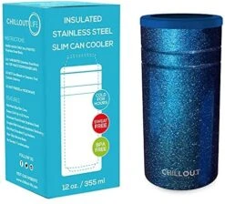 Skinny Can Cooler For Slim Beer & Hard Seltzer | 12oz Stainless Steel Tall Triple Insulated Can Drink Holder, Blue Sparkle – 1 Pack