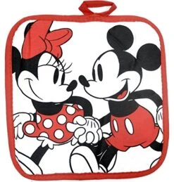 Disney Oven Mitt Pot Holder & Dish Towel 3 Pc Kitchen Set (Mickey Minnie Red)