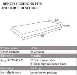 Piano Bench Cushion 30 X14 Inch For Indoor Shoe Storage Non Slip Picnic Bench Pad For Kitchen Dining Table Seat, Light Grey