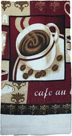 Mocha Coffee Design 100% Cotton Printed Kitchen Linen Set Of 5, Includes 2 Kitchen Towels, 2 Potholder, 1 Oven Mitt Kitchen Décor For Cooking, Baking, Barbecue