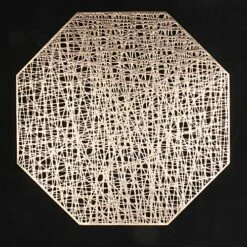 Octagonal Placemats Hollow Out Mats Vinyl Non-Slip Heat Insulation Kitchen Table Mats(Octagonal Gold, 6pcs)
