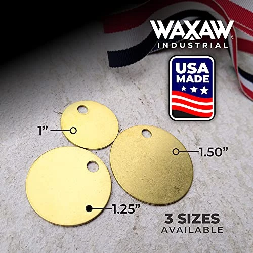 - IMPROVE WORKPLACE SAFETY and keep track of equipment with WAXAW Industrial Round Brass Tags. Label wiring, keyrings and tools with engravable blank chits that withstand the effects of time and temp.