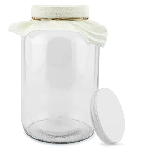 - FOOD GRADE: Food safe jar, BPA-free plastic lid, & all-natural cloth cover