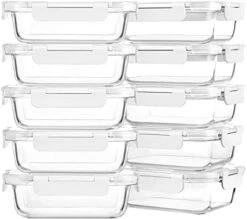 - HIGH QUALITY BOROSILICATE GLASS:Our glass storage containers are made from high quality borosilicate glass, which is stronger than cheaper glass food storage containers, safely go straight from the refrigerator to the microwave or oven to the table.
