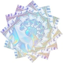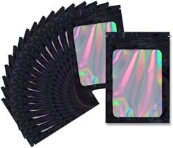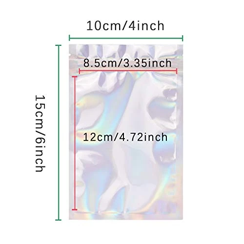 - ★【HOLOGRAPHIC RAINBOW COLOR】Foil zip lock bags come with holographic rainbow color in the back and transparent in the front in order to display the product clearly.