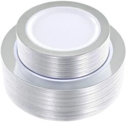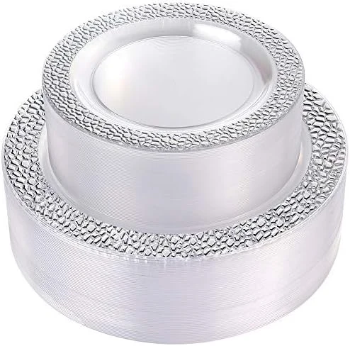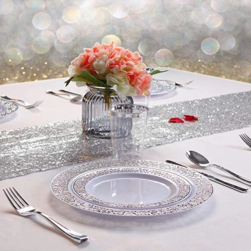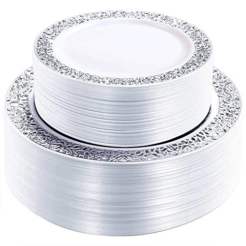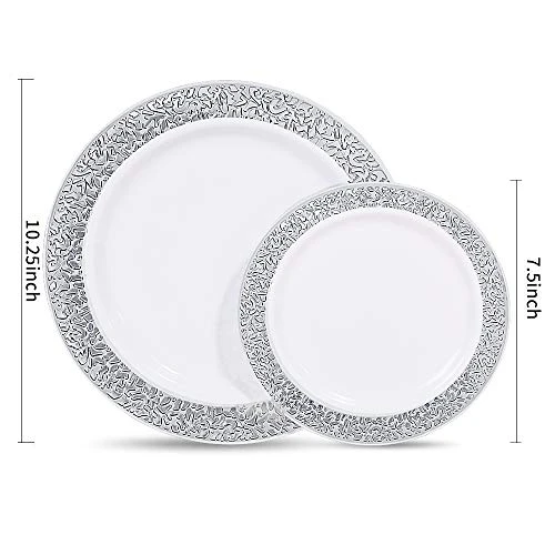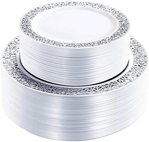- GREAT VALUE:Modern plastic plates designed to give your table settings an gorgeous look. Our silver disposable plates are perfect for weddings, Receptions, Birthday parties, Baby showers, Christmas dinner and any occasions.