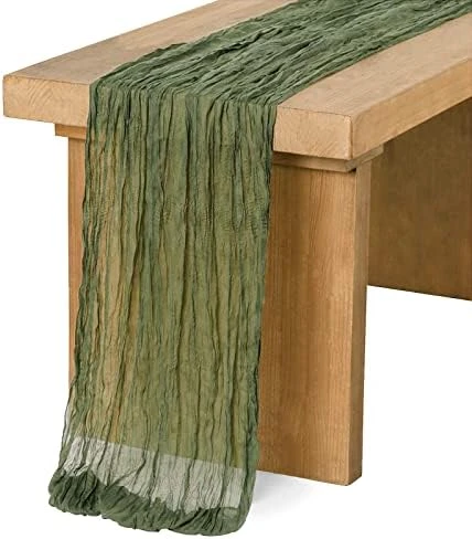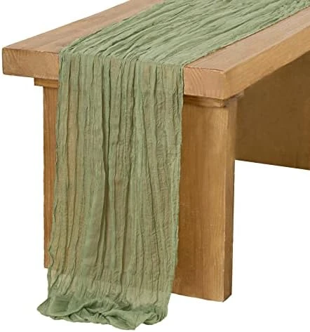 - Package: 1 Piece premium cotton like cheesecloth gauze table runner with wrinkled , approx.35″ wide and 10 feet length.