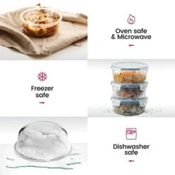- PREMIUM GLASS: Crafted of borosilicate transparent glass, containers tolerate rapid temperature changes, never warping or cracking. Entirely safe to transfer from freezer to oven in instants. Glass containers won’t absorb stains or smells, making them the perfect choice for acidic foods. Glossy surface maintains the tastiness of food for long periods of time.