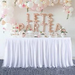 - 🤍EASY TO SET UP: Each of our Tulle Table Skirt come with loop sewn on and the package include hook with adhesive back side,you can only put the hook side on the table,and stick the hook and loop together, then you can fix the table skirt on the table.