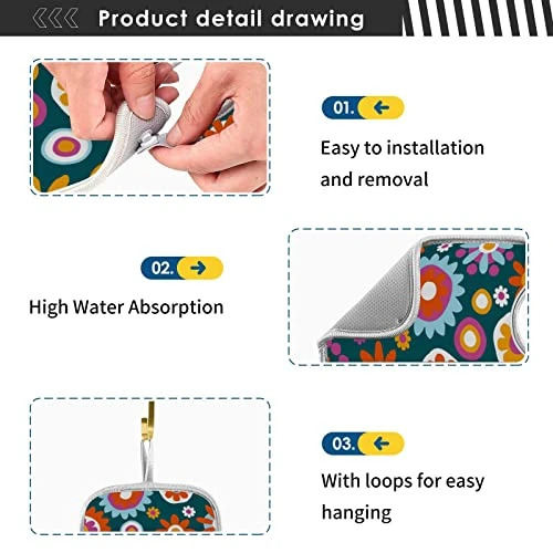 - MATERIAL: The main material of the absorbent faucet drying mat is polyester (printed surface) + composite sponge + cotton satin. Water absorption, soft, Reversible, washable and fade resistant.