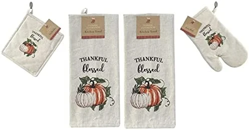 - Beautiful fall kitchen towel gift set and a great autumn season kitchen decor set – comes in an organza gift bag so it’s great for giving!