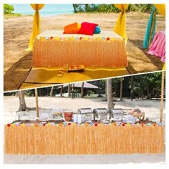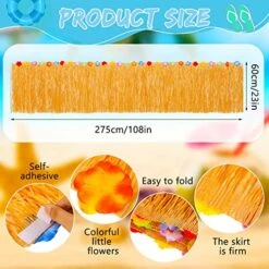 These grass table skirts for luau party are foldable, so they can be carried easily, you can put them in your shelves, cabinets, handbags, backpacks, luggage and more, convenient and efficient for you to carry and store.