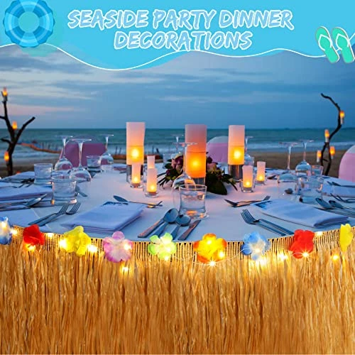 - Extensively Applicable Occasions: these raffia table skirts with LED night strings are not only suitable for Hawaii themed parties, birthday parties and beach parties, but also practical for graduation ceremonies, weddings, anniversaries, pool parties, costume parties and others