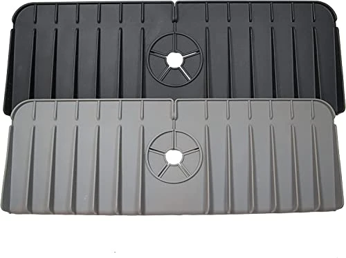 2 Pcs Silicone Faucet Handle Drip Catcher Mat For Kitchen Sink, Bathroom Sink, Farmhouse And RV (Grey/Black), Kitchen Sink Splash Guard Faucet Mat