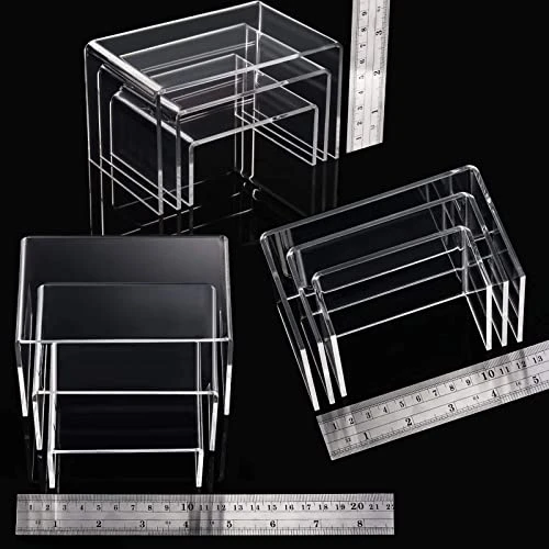 - Material: these clear display risers are made of acrylic, transparent material looks neat and tidy, durable and stable to hold the exhibition