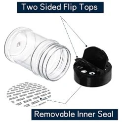 - The lids of these plastic spice bottles are two sided flip tops for shaking or pouring spices.