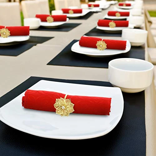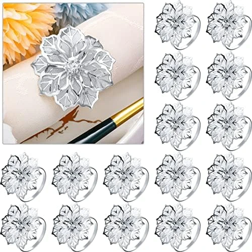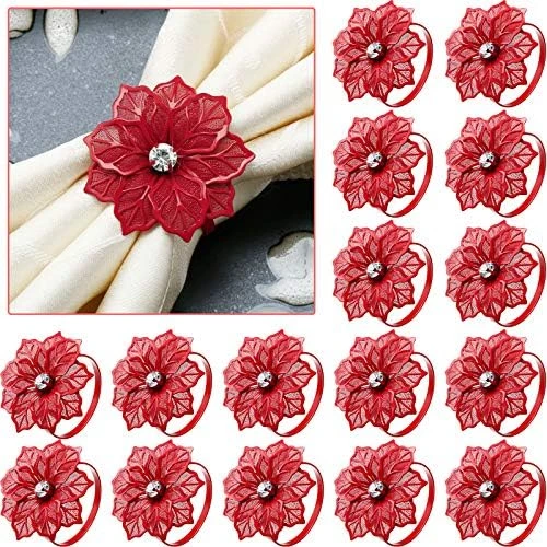 - Glittering appearance: the diameter of napkin ring holder is 1.69 inches and the flower is about 1.96 inches, the faux rhinestones will shine brilliantly in the light, beautiful design brings elegance to your table, and makes your food look more delicious