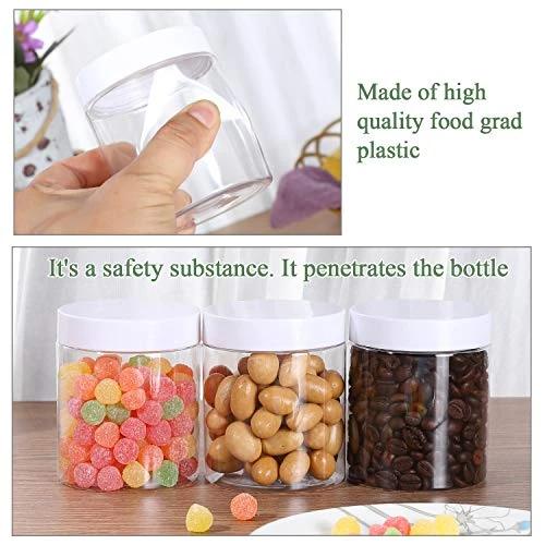- 【Leak-proof Performance】 The clear clear plastic jar with lid creates an airtight seal to prevent leakage and keep your container clean, which gives protection for the inner items when the lid is securely screwed onto the container.