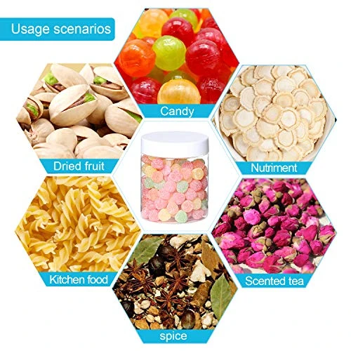 - 【Versatile Use】 Our food storage jars are very versatile, it offers a wide range of possibilities for storing all types of food such as nuts, pasta, spices, biscuits, etc. Also suitable for storing body lotion, moisturizers, face masks, DIY slime light clay. Size: 2.9 x 3.4” (bottom length x jars height). Large Capacity: 8oz.