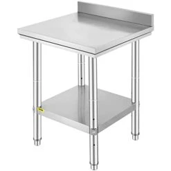 - 330 Lbs Load Capacity: Top shelf load capacity: 220 lbs; Undershelf load capacity: 110 lbs. Top shelf: 24 x 18.1 x 2.2 in; undershelf: 18.9 x 13 x 1.8 in. The stainless steel restaurant table provides a spacious food prep and storage surface. There is also have an undershelf for additional storage space. You can store flour, sugar, sanitizing pails, towels, mixing bowls, cutting boards, and more to keep all of your most-used supplies organized and within your reach.
