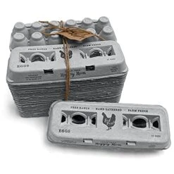 25 Egg Cartons- Adorable Printed Vintage Design For Farm Fresh Eggs, Recycled Paper Cardboard, Sturdy & Reusable, Carton Holds Up To XL Chicken Eggs (25, Locally Laid Hen)