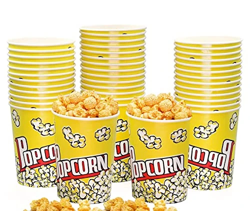 - [ππ₯πππ§ π©πππ¨π π£πππ]: Package includes 50 pieces of Movie Pop Corn Boxes, of 32Oz capacity. This popcorn buckets disposable is 5.5 inches in height and 4.5 inches wide in diameter from top