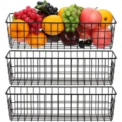 - Keep Organizer & Clean – Hedume 3 pack metal baskets help to save space, store and organize foods, seasoning tank, juice boxes, baking supplies, plastic wrap, snacks; or set as partition in wardrobe and shelf, to store your clothes, books or items separately.