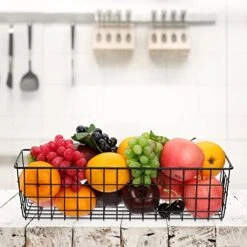 - Keep Organizer & Clean – Hedume 3 pack metal baskets help to save space, store and organize foods, seasoning tank, juice boxes, baking supplies, plastic wrap, snacks; or set as partition in wardrobe and shelf, to store your clothes, books or items separately.