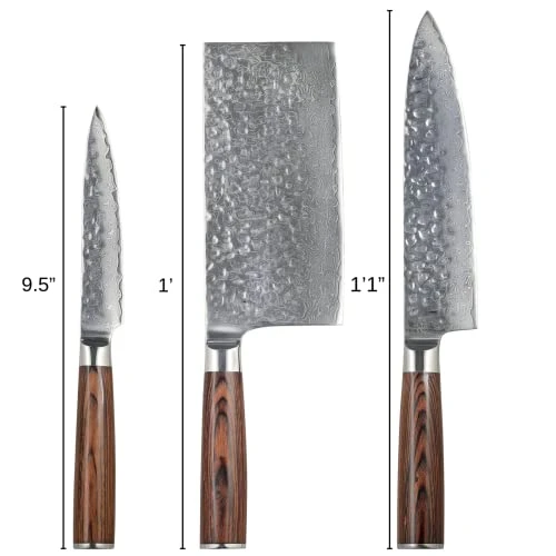 - 3 KNIVES COVER MOST OF YOUR KITCHEN NEEDS: Including an 8-inch Chef’s knife, a 7-inch cleaver, and a 5-inch paring knife.