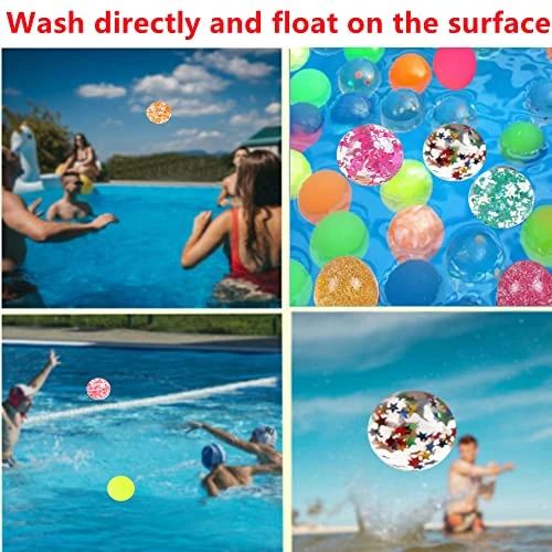 - The bouncy balls is made of high-quality rubber with reliable and safe design. The rubber ball is non-toxic and environment-friendly. It is very easy to clean. It can be washed directly. It floats on the water and can be played in the swimming pool.