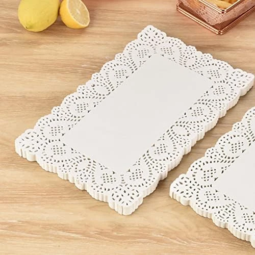 - Lace Paper Placemats.Size: 4.5 inch/11.5cm. Pack of 100.Unique hollow out designs and scalloped edges adds an elegance to your table centerpieces.