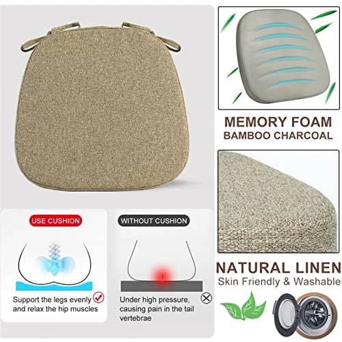 - ✔【DETAILS & COMPACT】16″W x 16″D x 1.6″H, include 4 counts U-shape seat cushions. Surface: Natural linen. Inside: 100% Pure Memory Foam. Bottom: Silicone Anti-Slip Fabric. * Compact Package: With excess air and water removal, these small differences in product size and weight lead to significant carbon emission reductions. The cushion will return to its original shape after a few minutes.