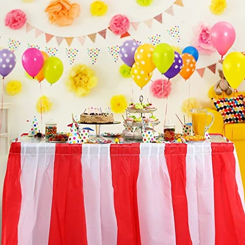 - Wide usage: these red and white festive table skirts are decoration for many occasion, eye-catching party center, suitable for carnival theme parties, circus theme parties, birthday parties, weddings, home decor, it is a nice decoration for dessert tables, candy tables, and buffet tables