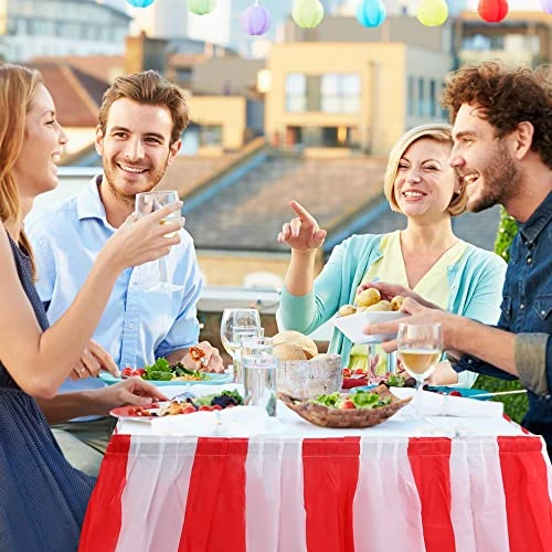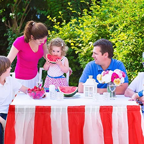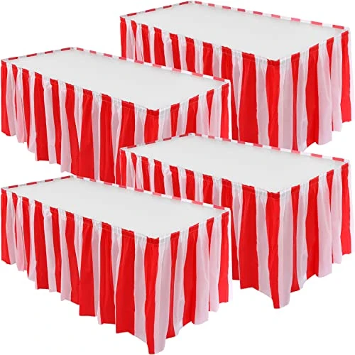 - It can help quickly create an unprecedented carnival party and fun party, decorate your summer party table with our red and white striped table skirts, the food and decorations on the table will become more attractive, and the party guests will be very happy in the whole place and table