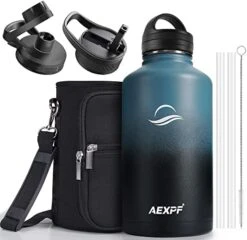 - Practical and Portable: This water thermos comes with a handle on all three lids for easy portability and a carrying pouch for any adventure in the wild, be it climbing, cycling, walking, hiking, camping, driving, beach , fitness and other outdoor sports, become your best partner to maintain sports and health, and this waterbottle can also become a necessity for your daily work, study and life