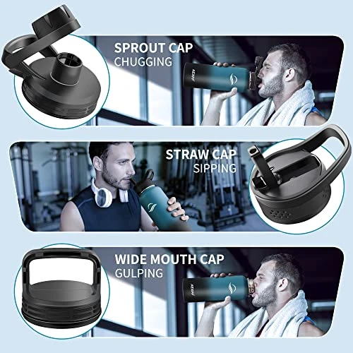 - 360° Leak-proof: The three lids equipped with the stainless steel water bottle contain food-grade sealing rings. When the lid is tightly closed, even if you shake the jugs 360°, the vacuum insulated water bottle will not leak. You don’t have to worry about beverage leakage or any quality problems, for a hassle-free hydration trip and an active and happy lifestyle