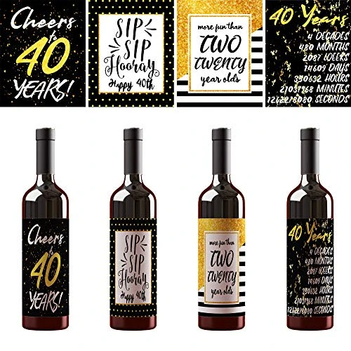 A fun way to celebrate the 40th birthday. The perfect addition to your 40th birthday party and make an extra special 40th birthday gift. Easy to use and will quickly dress up your beverage bar. All of your party guests will love your attention to detail and these festive wine bottle labels.