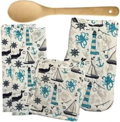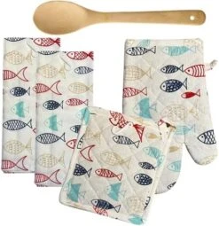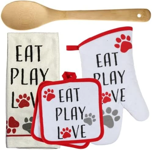 - SPLASH OF FUN FOR THE KITCHEN – These cute oven mitts and dish towel will keep your kitchen looking stylish and coordinated all year round.