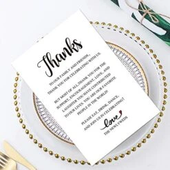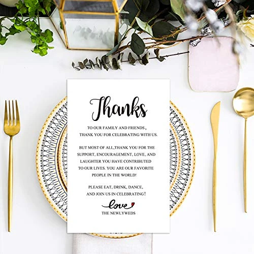 - Impress Your Customers: 50 Thank You Place Setting Cards, a thank you card at each place seating is a very thoughtful way to ensure each guest knows how appreciative you are for their attendance at your wedding or event.