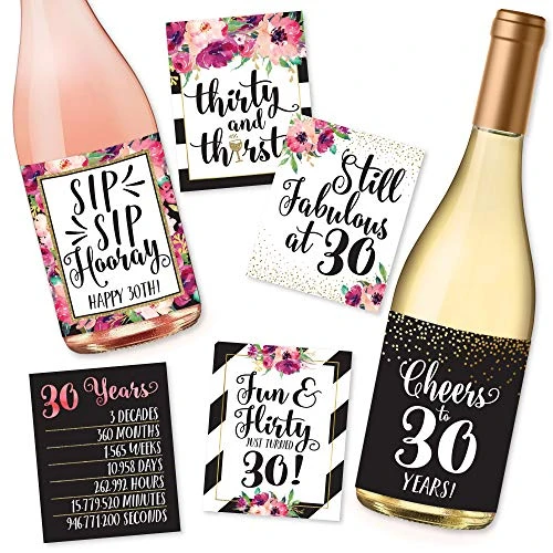 Our wine bottle labels are the perfect addition to your birthday party decorations and supplies, great gift for women, mom, wife, friend girls & more! With Pink Gold and Black colors!