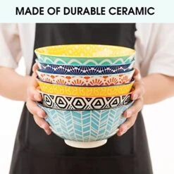 - * PRACTICAL DEEP BOWLS: Bowls are 6.25 inch in diameter and comfortably hold 24 oz, perfect for breakfast cereal, soup, salad, stew, pasta, snack, rice with some toppings. These ceramic bowls are quite deep, easy to hold when snacking on the couch.