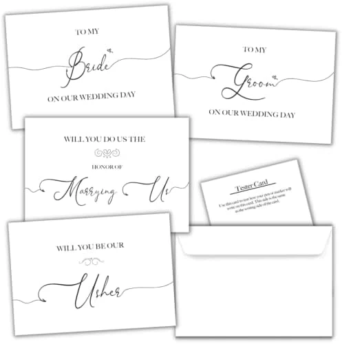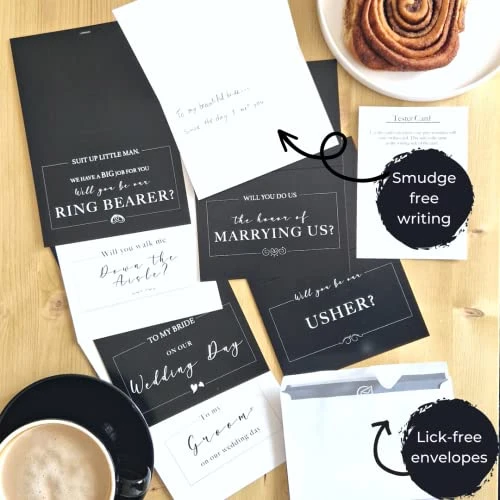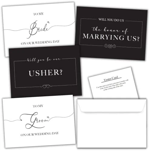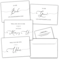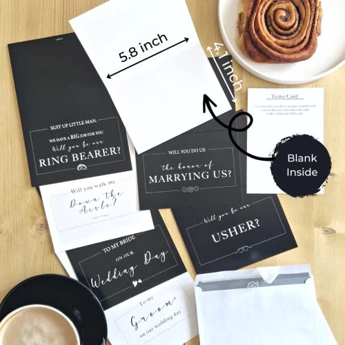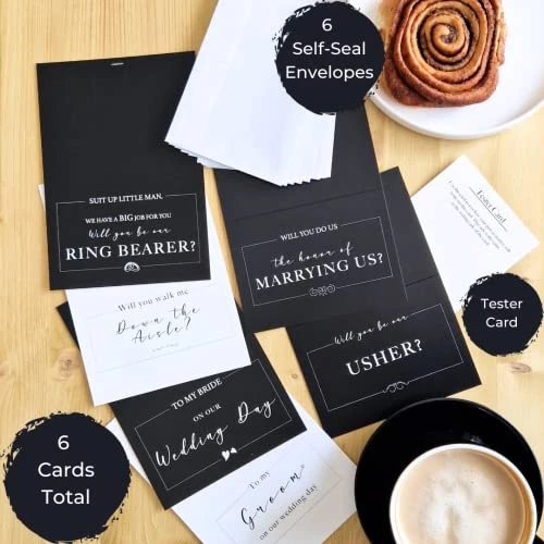 - EXTRA CARDS: 1 will you be my ring bearer, 1 will you walk me down the aisle card