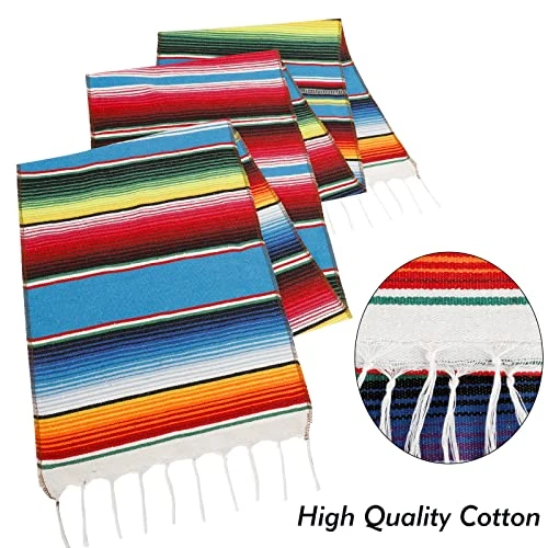 - Occasions♦ The three-color Mexican table runner is not only suitable for indoor and outdoor home decoration, but also suitable for fiesta party decorations, Cinco de Mayo, carnival party, tribal parties, etc.