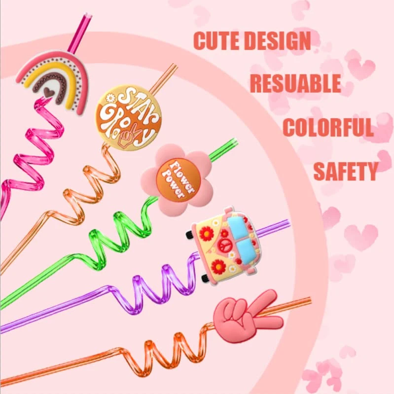 - ☮PACK INCLUDES: 24 Pcs Reusable Hippie Boho Drinking Straws ,2PCS cleaning brush, are great for birthdays as party favors and party supplies. Kids of all ages love them, especially kids aged 3 to 10 years old.