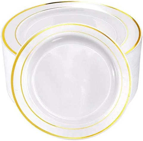 - CONVENIENT ELEGANCE: Gold disposable Plates with stylish and elegant look like real china can add a touch of style to your event without the risk of broken plates and clean up