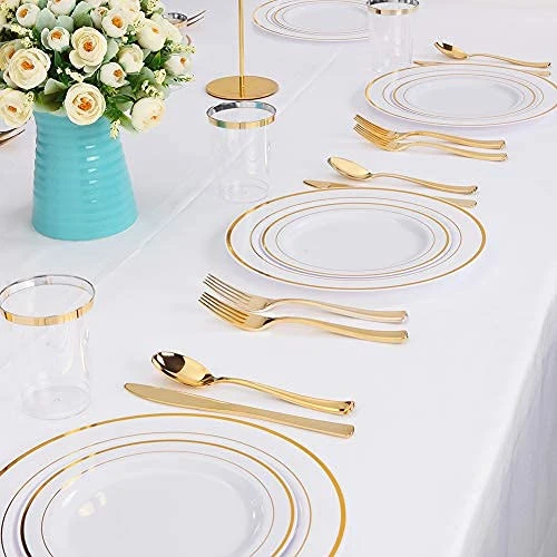 - SATISFACTORY AFTER-SALES SERVICE: If you are unsatisfied with our gold plastic salad plates and forks. Please feel free to contact us, we will deal with it for you as soon as possible