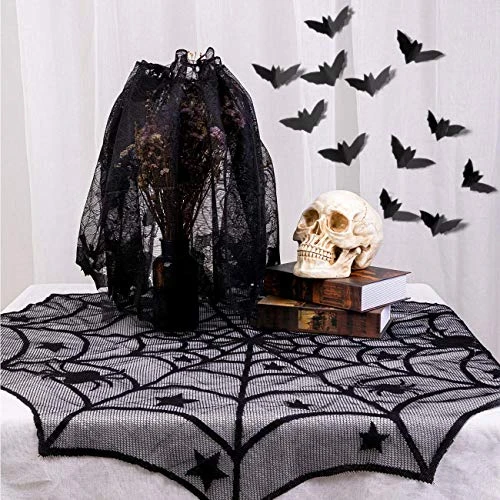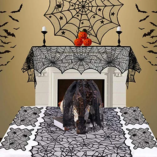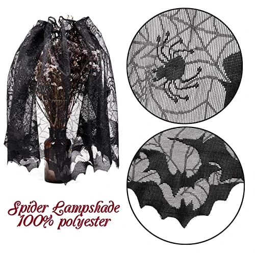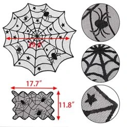 - Package Included:4x rectangular spider web placemat (11.8″x17.7″),1xfireplace mantel scarf(17″x96″),1xBlack Lace Table Runner(23.6″x75.6″),1xSpider Lampshade(63″x17.7″),1x Round Lace Table Cover(39.4″x39.4″),All these covers enough for you to decorate the lights on Halloween and have Helps increase the amazing Halloween atmosphere.