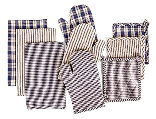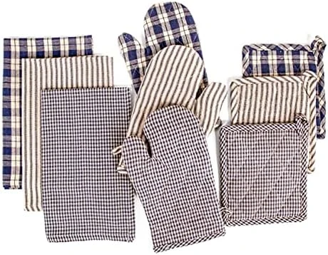 - 9 PIECE COUNTRY KITCHEN THEME SET: Includes kitchen towel sets with pot holders and oven mittens – all in the same color & design to coordinate with your kitchen decor