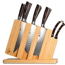 - The PROFESSIONAL CHEF’S KNIFE boasts a high-carbon Cr17 stainless steel blade that contains 0.7-0.75 carbon, which enhances its durability. Compared to other knives in its class with approximately 0.35% carbon, this knife is twice as tough.