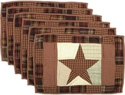 - COUNTRY PATCHWORK DESIGN: Traditional style that compliments any country, rustic, or Americana home. Abilene Star features burgundy, tan, and dark brown in a traditional quilted patchwork plaid and star design. Reverses to burgundy, black, creme, and tan plaid.